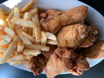 FRIED WINGS SERVED WITH CAJUN SEASONED FRIES, SAUCES (BBQ, SWEET CHILLI, GARLIC PARMESAN, BUFFALO, JERK, LEMON PEPPER, ASSASSIN, AND SOULE)
