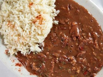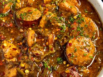 LOADED WITH OKRA, PEPPERS, CELERY, TOMATOES SERVED WITH WHITE RICE