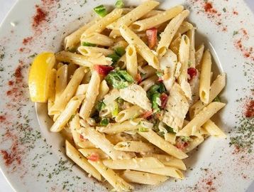 YOUR CHOICE OF SHRIMP OR CHICKEN SERVED WITH CREAMY ALFREDO SAUCE PASTA
