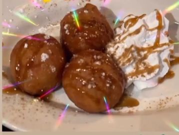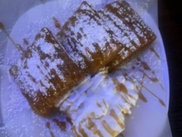 SOULE FAMOUS DRIZZLED WITH CARAMEL, POWDERED SUGAR AND NON- DAIRY WHIP CREAM