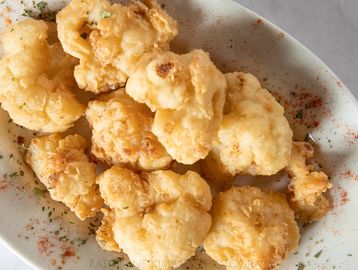 SEASONED, BATTERED, AND DEEP-FRIED OYSTER MUSHROOMS SERVED WITH SPICY DIPPING SAUCES