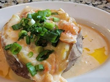 BAKED POTATO WITH OUR SEAFOOD SAUCE WITH SHRIMP, CRAB, AND CRAWFISH